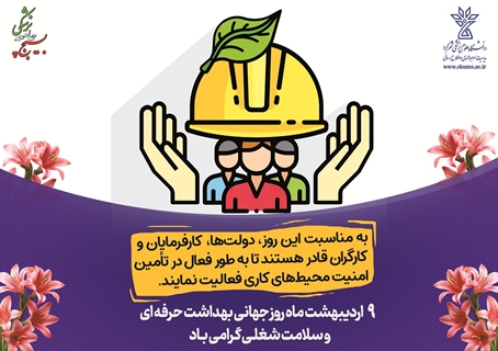 به همین مناسبت ضمن آرزوی تحقق شعار امسال روز جهانی ایمنی و بهداشت حرفه ای با مشارکت تمام عوامل کار و تولید شامل کارگران، کارفرمایان و سازمانها و تشکل های خصوصی و دولتی، این مناسبت را به تمامی نامبردگان و خصوصا کارشناسان صدیق بهداشت حرفه ای که در جهت حفظ سلامت نیروی کار صادقانه خدمت می نمایند تبریک عرض نموده و از خداوند منان سلامتی، سرافرازی و توفیق روزافزون برای ایشان خواهانیم. »
