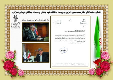 «بر اساس مصوبه پنجاه و هشتمین کمیته تایید صلاحیت روسای دانشگاه ها در شورای عالی انقلاب فرهنگی، به عنوان "رئیس دانشگاه علوم پزشکی و خدمات بهداشتی درمانی شهرکرد" منصوب می شوید.